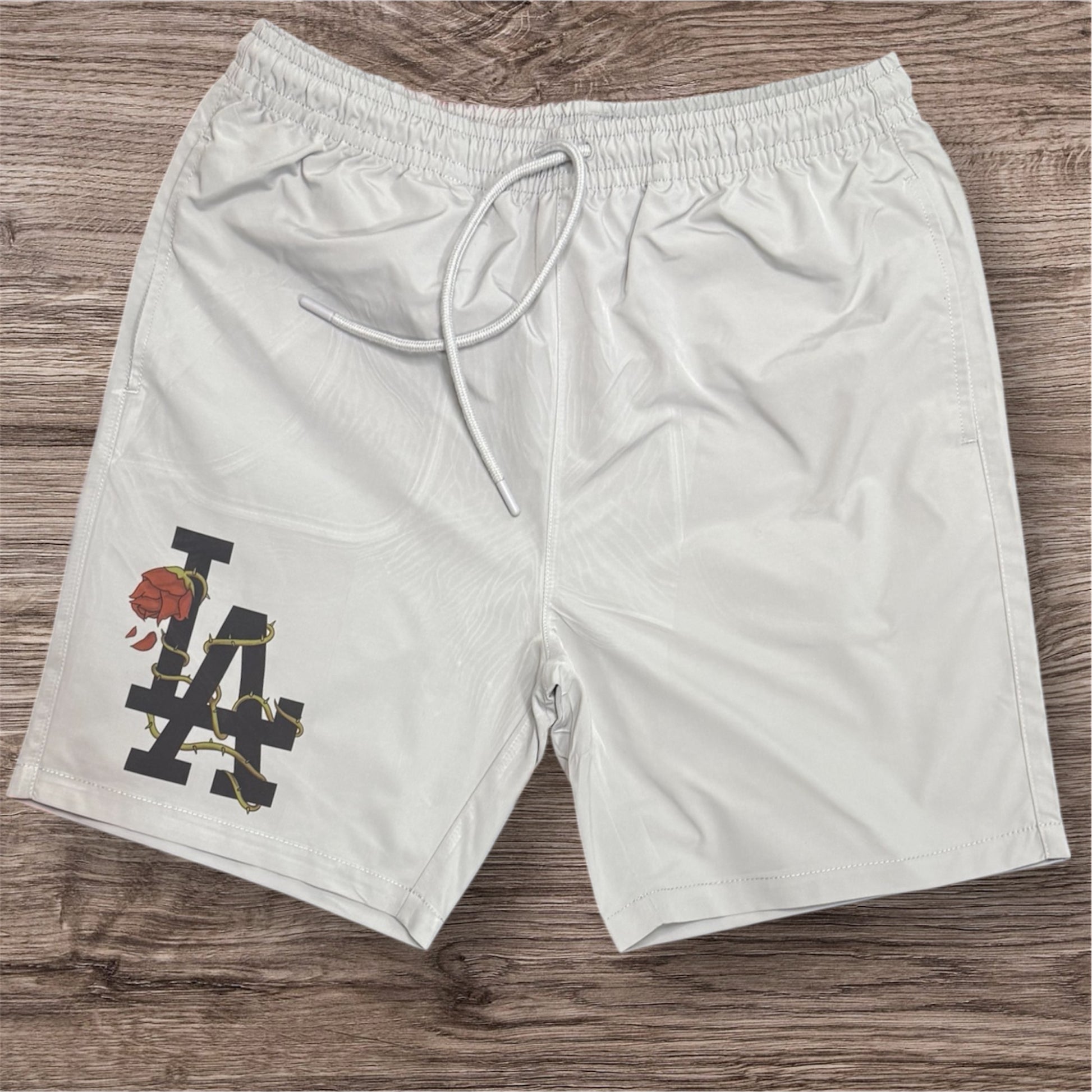 Brand new, LA shorts, gray in color, size 32 waist, custom made shorts, retail $50